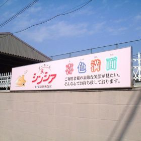 | 仕様 | 本体/アルミ複合板 面板/カッティングシートor インクジェット出力 本体サイズ/W1800×H900mm ※サイズは自由にご指定頂けますのでお問合せください。最近トタン板、アクリル板、エンビ板に代わって開発された資材です。軽くて長期耐候性があります。 その他の呼び名としてサインアルミボードとかアルポリ(アルミ複合板)ともいいます。 |