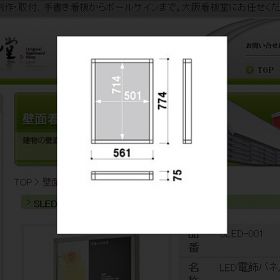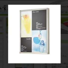 | 仕様 | 本体/アルミ押出型材 面板/アクリル透明1.5mm+アクリル乳半3.0mm 本体サイズ/W561×H774mm長寿命で省エネのLEDを使用したライトボックスです。 従来型の約1/2の省エネ 光るポスターはよく映え、メニュー等に最適。 |